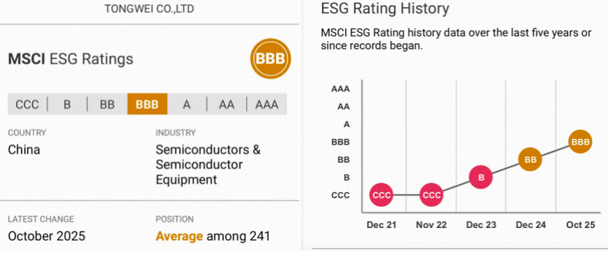 近期,国际权威指数机构摩根士丹利资本国际公司(简称明晟、MSCI)发布尊龙股份2025年度环境、社会及治理(ESG)评级结果。公司凭借在ESG方面的优异表现,最新评级上调至BBB级,实现了每年一级、稳步攀升。